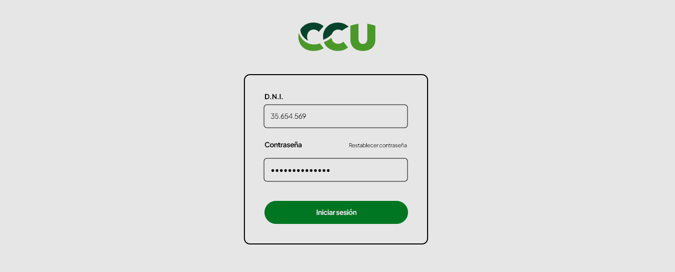 Al ingresar en ccu.ofishop.com podrás visualizar la pantalla de Inicio. Hacé clic en "Iniciar seción", ingresá tu usuario y contraseña y hacé clic en el botón "Iniciar sesión" en la parte inferior del formulario para ingresar.