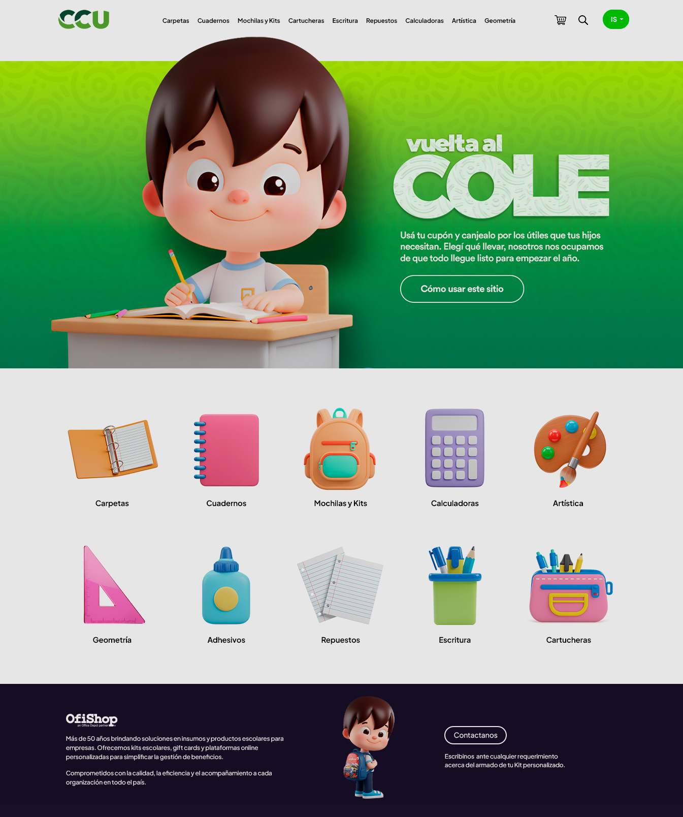 Al iniciar sesión podrás visualizar la portada del sitio en donde podrás empezar a completar tu kit canjeando tus puntos por útiles escolares.